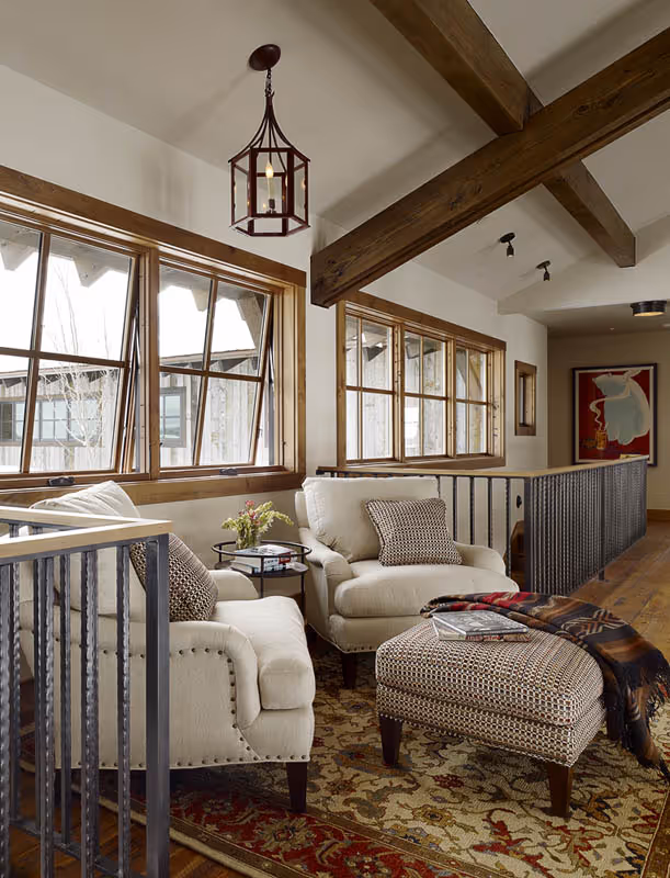 Interior Designer Joanne Mitchell introduced textiles referencing the owner's East Coast roots on the Jensen Canyon residence achieving a harmonious balance of East and West design elements.