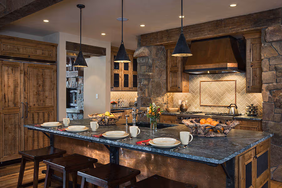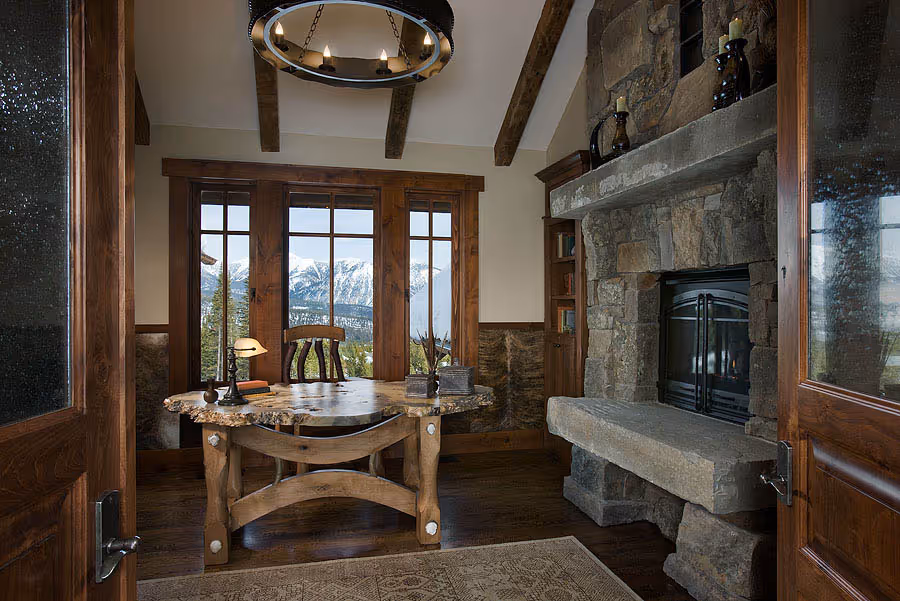 With a distinctive infusion of rustic Montana warmth and sophisticated charm, this home was designed by Centre Sky Architecture, Ltd. Combining elements including reclaimed timber,custom windows and locally-forged metalwork, the Elk Ridge Lodge celebrates its unique and beautiful surroundings. Each handcrafted detail of this home contributes to its exceptional character, drawing on inspiration from the mountain wilderness and Westernflair. Since 2011, this spectacular home has been featured in the Big Sky Journal, Dream Home Showcase, Timber Home Living, Cowgirl Magazine and Ralph Kylloe’s book, Rustic Living, among others. “The team was focused on all of the important details,” says the owner. “It’s a home that inspires us every time we return to Montana.”