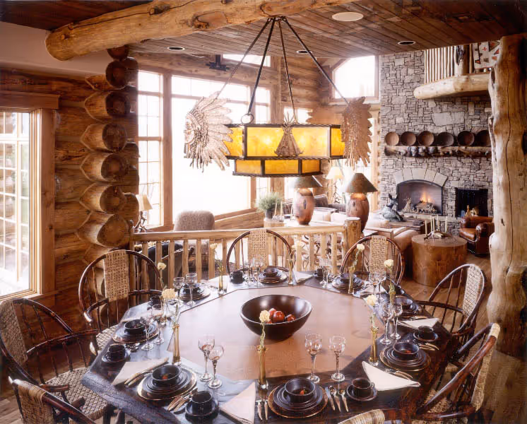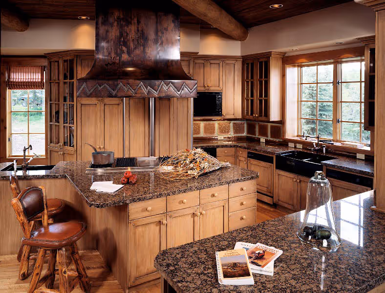 Each customized detail of this distinctive home contributes to its deeply unique character. Inspired by Western culture and landscapes, every space in this residence is infused with beautiful textures and elements. Rugged logs, handcrafted stonework and metal accents cultivate a sense of classic Western luxury and charm.