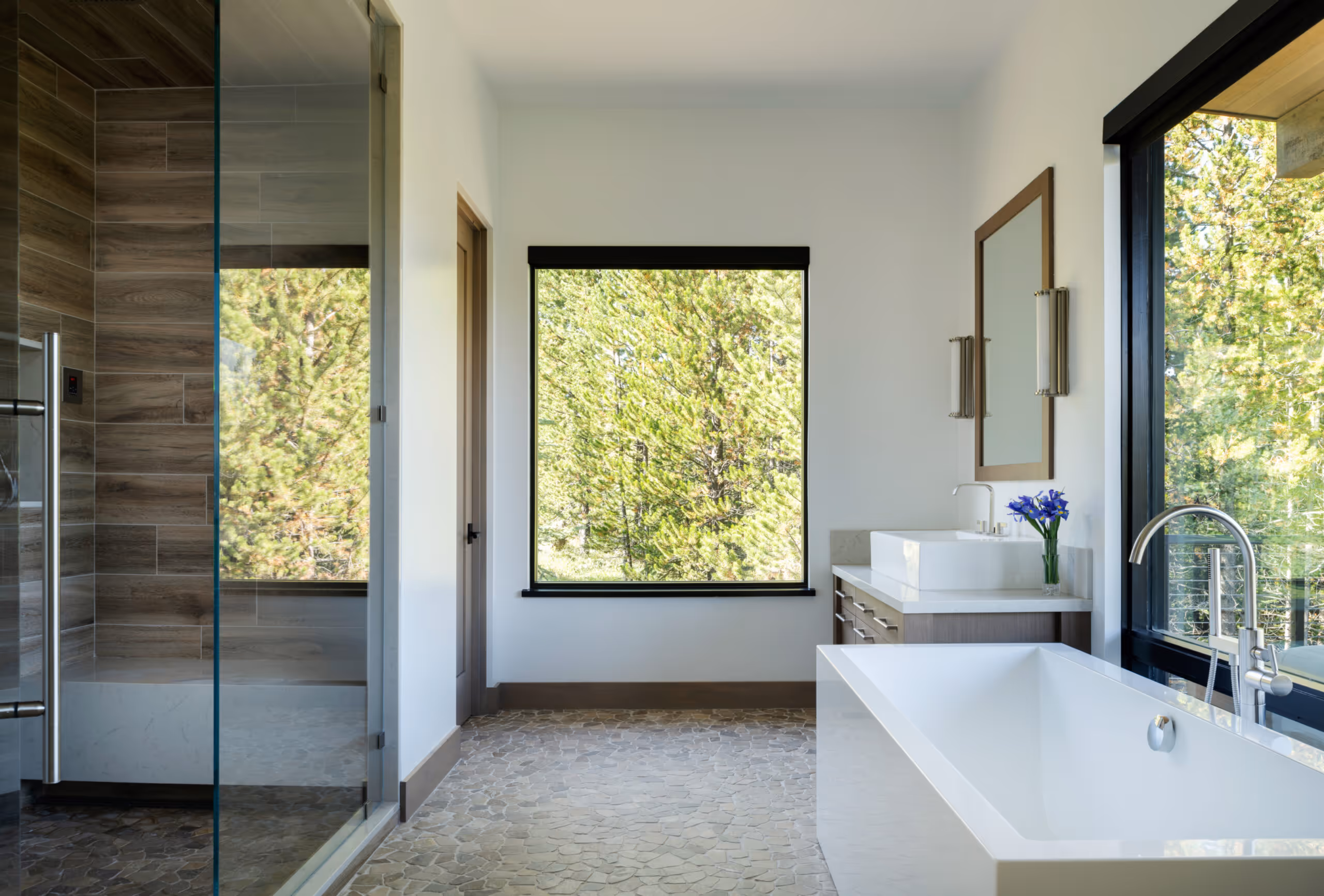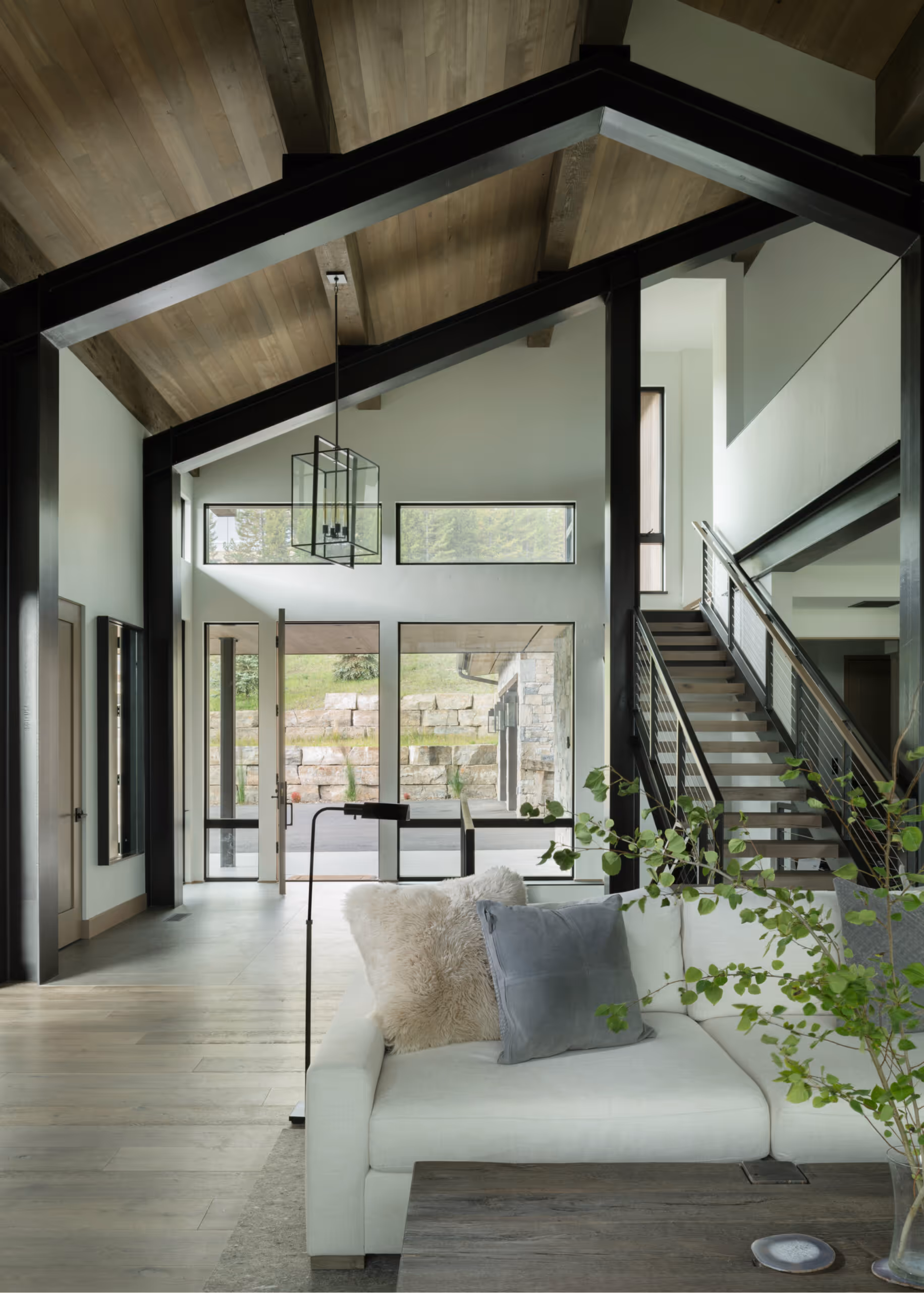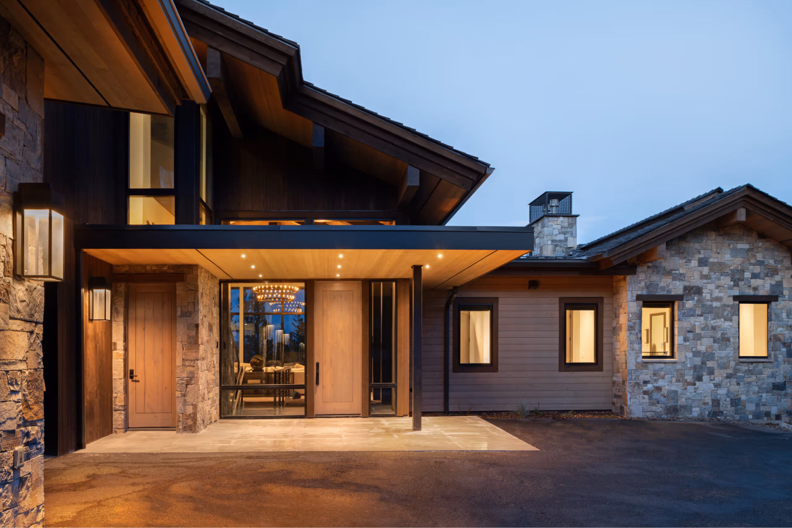 Designed by Reid Smith Architects, this amazing home combines the clean line aesthetics of Mountain Modern design with traditional roof lines. Architectural metal and stone are used throughout the home, and is complemented by several lift-and-slide doors, and even an exterior pocket door. This home was completed in Spring of 2022.