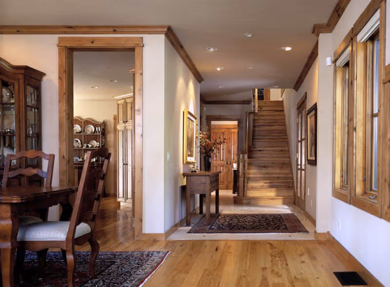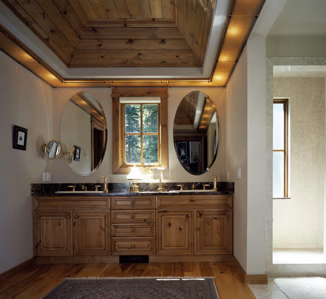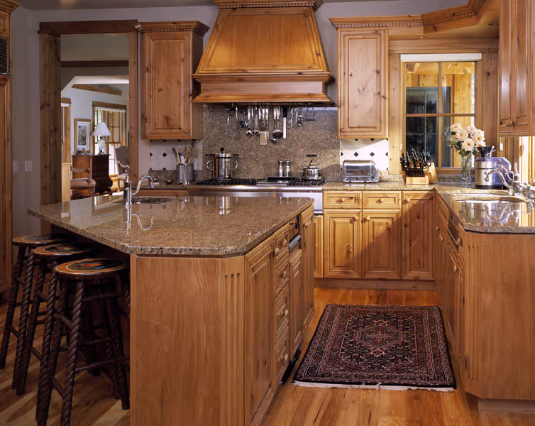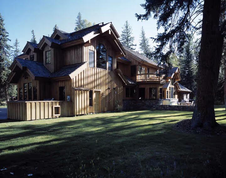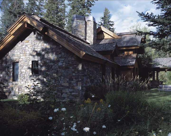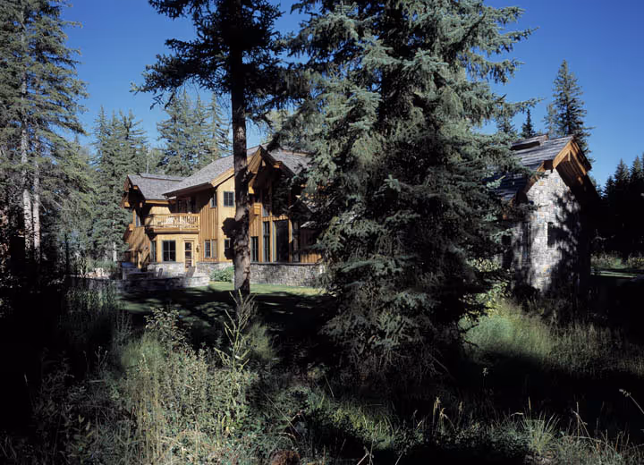 Nestled into the peaceful riverbottom forest, this residence was inspired by the owner’s desire for pure tranquility, entertaining guests, and enjoying Rocky Mountain pastimes. Designed by architect Danny Williams, this distinctive home artfully combines the elegance of the Western palette with more rustic and traditional shapes and angles. Custom stonework and wood finishes create a warm and welcoming ambiance, almost the sense of an oasis in the wilderness.