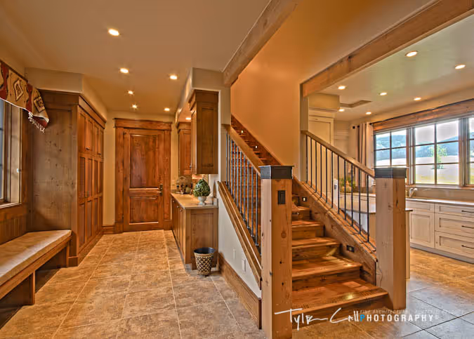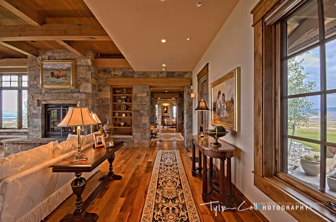 This refined, sophisticated residence was designed and built with style and energy efficiency in mind. Thanks to advanced foam insulation, EnergyStar appliances, a 350% efficient geothermal heating system, solar thermal collectors for hot water and sophisticated electronic controls, the annual energy costs of this home are 60% less than those of a comparable-sized home. However, the focus on efficiency did not detract from the stunning character of this mountain home. With rugged wood and stone finishes, blended with elegant and warm décor, this home is a breathtaking Western residence.