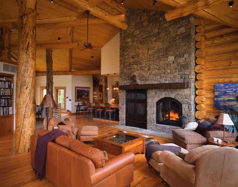 Influenced deeply by the owner’s passion for art and photography, Eliot Goss designed this beautiful home. An artful and sophisticated blend of classic Western flair and chic contemporary elements, this elegant residence has a truly timeless mountain character. Featured in Log Home Design Ideas, this profoundly unique home reflects the rugged natural beauty that surrounds it.