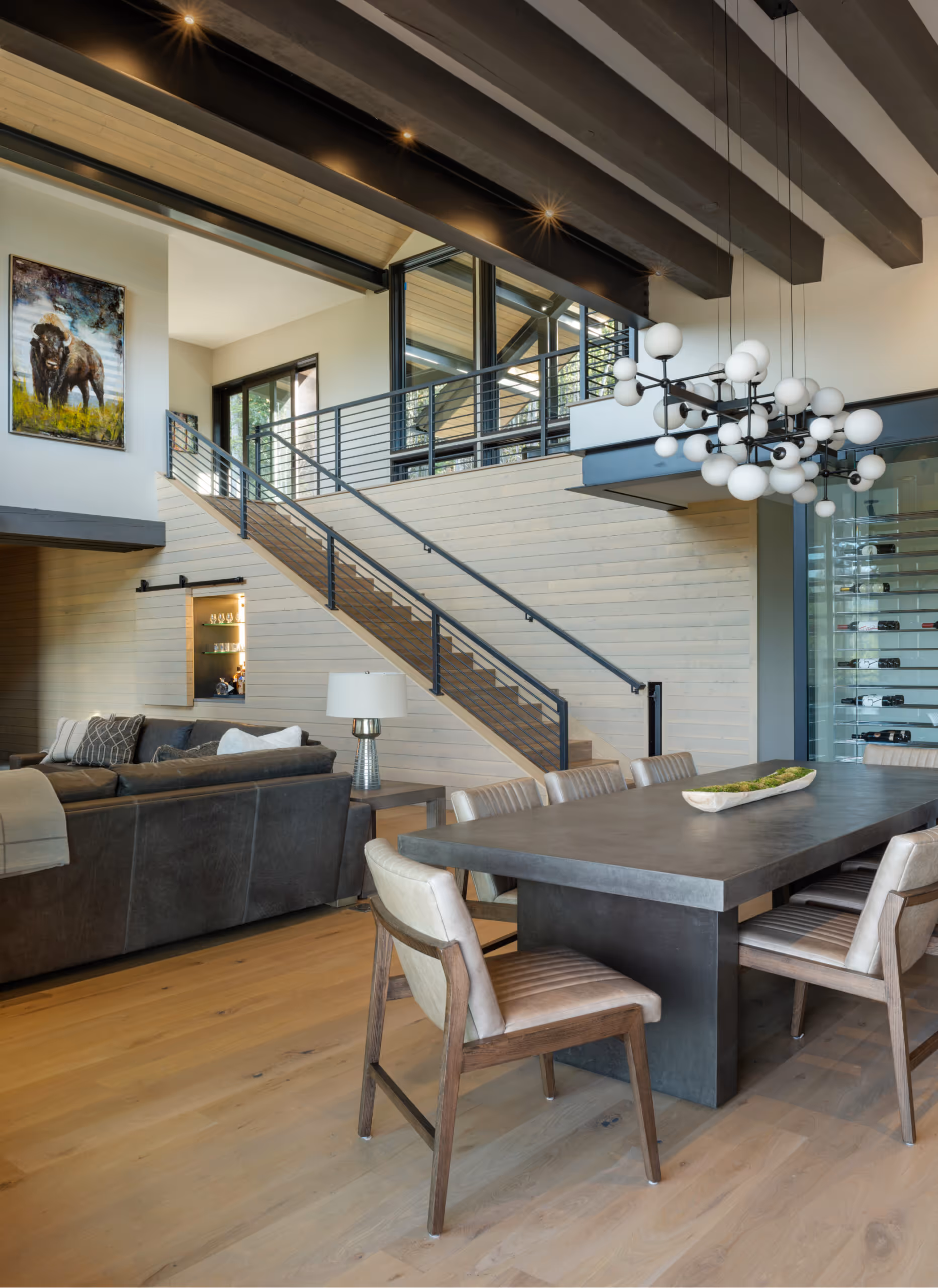 This Mountain Modern home, designed by Centre Sky Architects, captures the beautiful Spanish Peaks range. Amazing outdoor living space and a custom Dining Room door accentuate this amazing home. This home was completed in Summer of 2021.